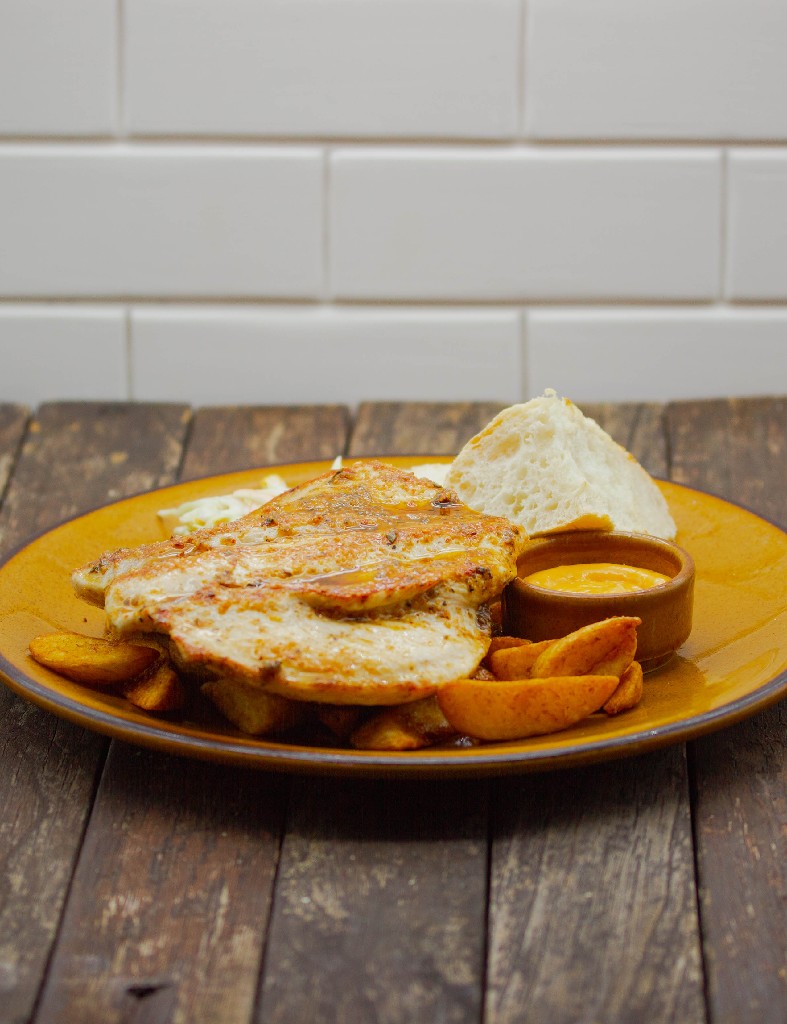 Todas las carnes van acompañadas de patatas fritas o ensalada de col.